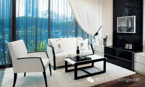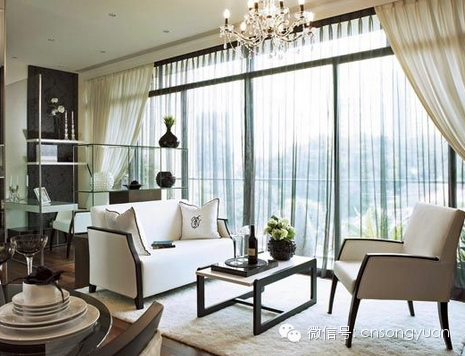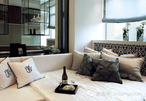 黑白的搭配,是室内设计最经典的颜色组合。白色的家具给人轻柔淡雅的感觉,营造出鲜明的简约风格。